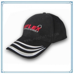 100%全棉面料,黑色六片运动帽,8CM帽舌,额面刺绣白色立体线条,前片刺绣LOGO,尾带可调节,成人尺寸58CM