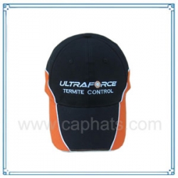 100%全棉面料,黑色配橙色六片运动帽,8.5CM帽舌,有白色含绳,前页刺绣英文LOGO”ULRAFORCE“,尾带可调节,成人尺寸58CM